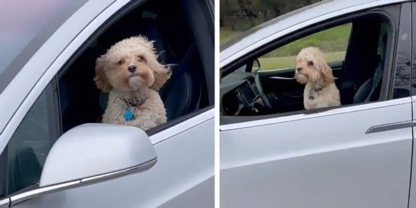 Действие происходит в Техасе. Tesla Model X движется на автопилоте, а на водительском кресле сидит собака, выглядывая в открытое окно. Рядом на пассажирском сиденье никого нет, а задние окна затонированы, поэтому непонятно, присутствует ли кто-то еще в салоне.