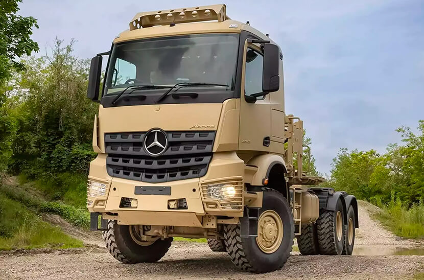 Так, модельная гамма оборонного предприятия Mercedes-Benz Special Trucks обновилась за счет трёхосных бескапотников Arocs с колёсной базой в 4,2 метра и допустимой массой грузовика в 40 тонн. В отличие от похожих гражданских тягачей, эти модели имеют люк в крыше, систему контроля давления в шинах, фары с автоматическим затемнением и особой ливреей.