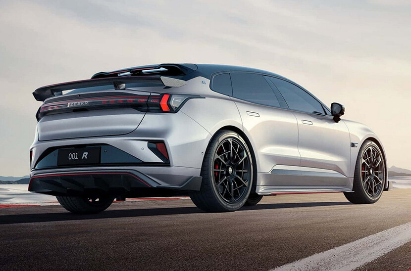 Снаружи Zeekr 001 FR отличается от обычной «единички» штрихами. Добавлен передний сплиттер, заднее антикрыло, видоизменён диффузор, поменялись колёса, а на задних стойках появился шильдик. При ближайшем рассмотрении видно, что доработки серьёзные: 22-дюймовые алюминиевые диски крепятся одной центральной гайкой, тормоза карбон-керамические, а передние суппорты десятипоршневые.