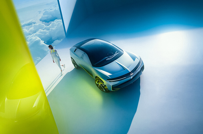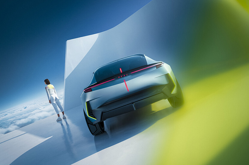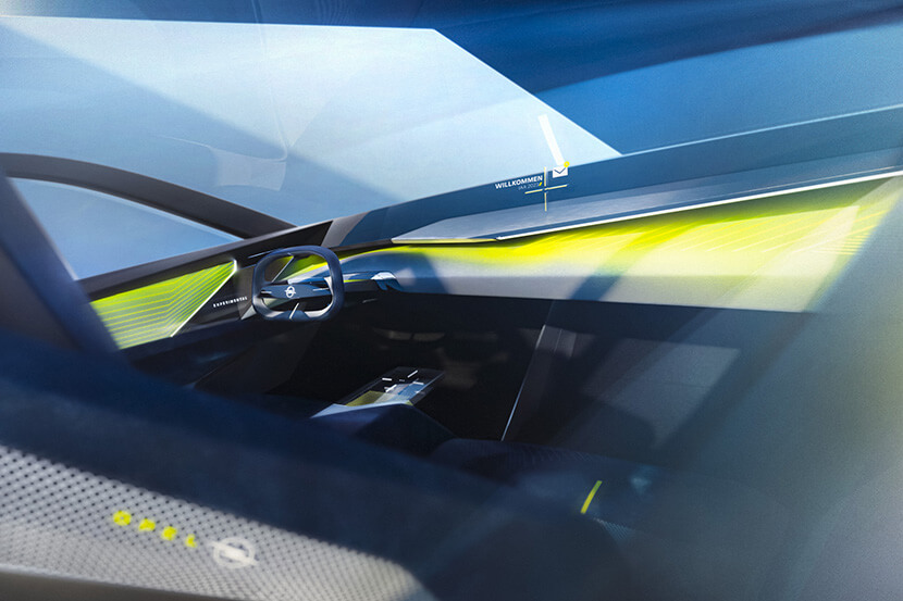 Под радиаторной заглушкой Opel Vizor спрятаны различные датчики и радары, а также лидар и камеры для ассистентов водителя. Камеры здесь заменяют собой и наружные зеркала заднего вида. Для лучшей аэродинамики ручки дверей сделаны утапливаемыми, в корпус добавлены закрылки с обеих сторон и диффузор.