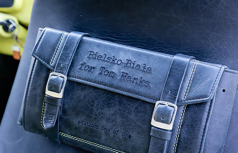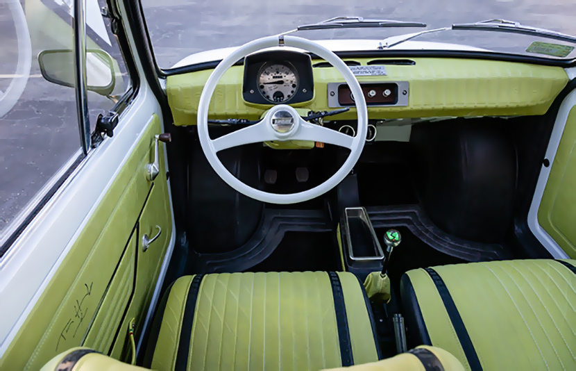 Интерьер машины гораздо интереснее. В Carlex Design салон обтянули кожей лимонного цвета с контрастными черными полосами. Все кнопки и переключатели получили серебристую отделку в стиле клавиш печатной машинки, поскольку еще одной слабостью Тома Хэнкса является собирательство этих предметов старины. На рукоятке переключения передач присутствует символ Бельско-Бялы, где изначально производился Polski Fiat 126p, а под спидометром нанесена надпись, гласящая: «Бельско-Бяла для Тома Хэнкса». Кроме того, мистер Хэнкс оставил автограф на дверной карте со стороны водителя.