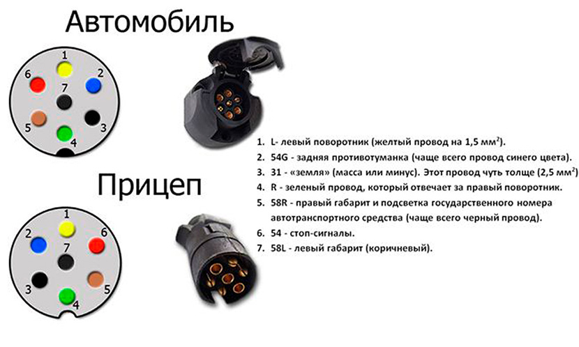 При подключении электрики прицепа следует обратить также внимание на вид разъема. Если прицеп родом из США, для него потребуется 13-контактный разъем, а если он европейский, то 7-контактный. Впрочем, чтобы подключить европейский прицеп к машине с американской проводкой, необязательно менять оборудование – можно купить лишь переходник.