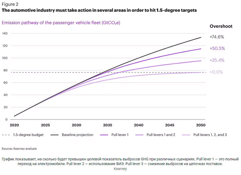 Проблему можно решить лишь общими усилиями, считают авторы отчета. Правда, их предложения слишком радикальные и вдобавок должны реализовываться в комплексе. Скажем, недостаточно увеличить долю электрокаров в общих продажах с нынешних 6% до почти 100% к 2032 году – нужно еще заряжать их только электричеством из возобновляемых источников. Но даже в этом случае перерасход выбросов GHG будет около 25%. Снизить их до нуля поможет декарбонизация цепочек поставок.
