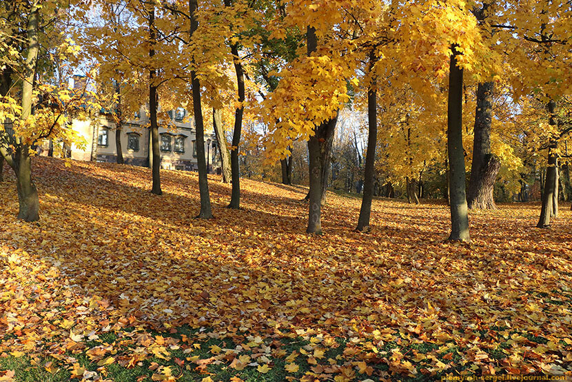 Но главное здесь именно парк, особенно удивительно выглядящий осенью. Наиболее ухоженной в нем была и остается центральная аллея, проходящая с юга на север, вдоль которой растут величественные дубы, ясени, грабы, ольха. Лучше начать ее осмотр с восточной стороны, где расположен небольшой, но очень лирический пруд.
