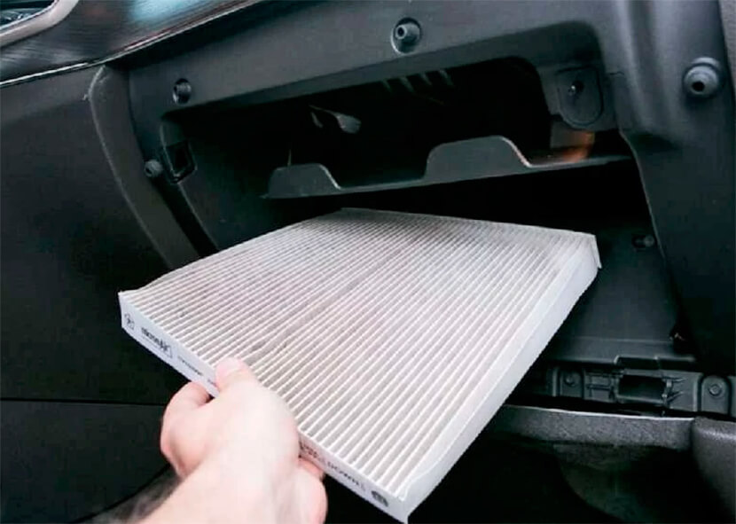 Обычно расположен за бардачком или под капотом у основания лобового стекла. Процедура очень похожа на ДВС-авто и подробно описана в инструкции или видеоинструкции для вашей модели. Улучшает работу климатической системы. (Простое ТО, не связанное напрямую с неисправностью, но важное).