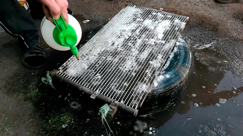 Любой механизм следует содержать в чистоте, а системы охлаждения в жаркий период – особенно. Поэтому летом периодически промываем конденсор слабой струей воды, чтобы не повредить его тонкие соты; направляем поток вдоль ребер, чтобы их не погнуть. Пыль и налипший пух стараемся сдуть с поверхности струей сжатого воздуха. Не пренебрегаем мойкой системы и зимой, так как налипшая каша из снега и реагентов может создать на радиаторе корку, которая будет его разъедать.