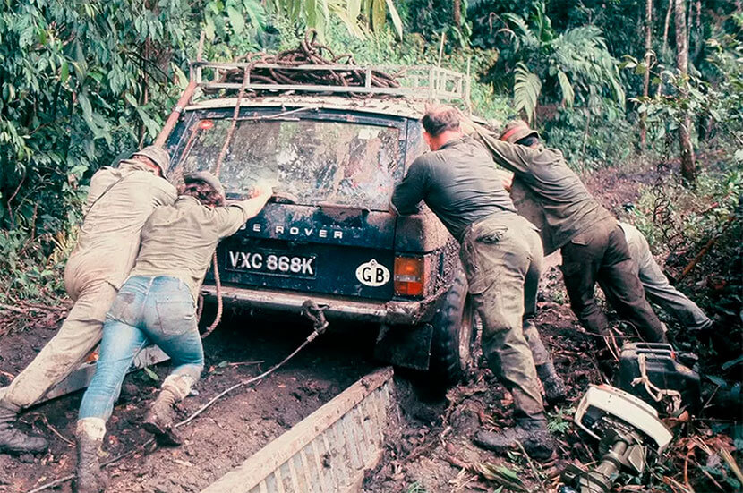 Стоит отметить, что такие технические узлы, как дифференциалы, специально для экспедиции на Range Rover никто не усиливал, они были стандартными: один центральный и два межколесных. Их ресурса попросту не хватало для полноценной работы с болотными шинами, в которых был развитый грунтозацеп. Помимо собственной тяжести, эти колеса набирали на себя килограммы грязи, что привело к быстрому износу и гибели дифференциалов. На одной из машин задний технический узел попросту взорвался, не встретив никакого сопротивления, так как диванов в экспедиционных авто установлено не было. На ремонт машины ушел почти месяц, а детали доставлялись по воздуху. Эта задержка привела к тому, что сезон дождей застал группу в самом сердце Дарьенского разрыва.