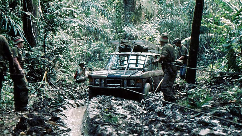 Рано или поздно такой момент настает в любой экспедиции. За время мучительного ожидания некоторым членам группы удалось вернуться в Панаму, где они на свою удачу приобрели видавший виды Land Rover Defender, который впоследствии сделался основным прокладчиком маршрута. Армейский джип Series II оказался куда более приспособленным для покорения сельвы и даже участвовал в экспедиции 1960-ых годов, о которой говорилось выше. Но даже с ним процессия продвигалась по джунглям мучительно долго, так как из-за тропических ливней и без того неспокойная река Грейт-Атрато превратилась в смертельно опасный грязевой поток.