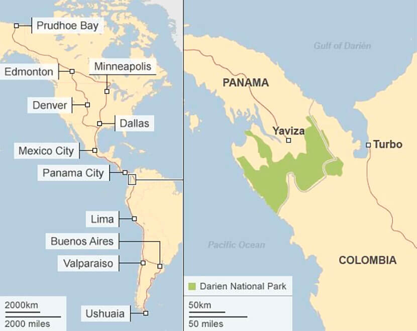 Также стоит отметить, что строительство Панамериканского шоссе никогда не являлось общим проектом для стран Северной и Южной Америки. Каждая из них строила отдельные участки дорог в разное время, благодаря чему общая их сеть сегодня достигает 30 тысяч км. Тем не менее на самом опасном участке трассы, в дельте реки Атрато, до сих пор не представляется возможным возвести сколько-нибудь безопасную переправу. Отсюда и название местности – Дарьенский разрыв.