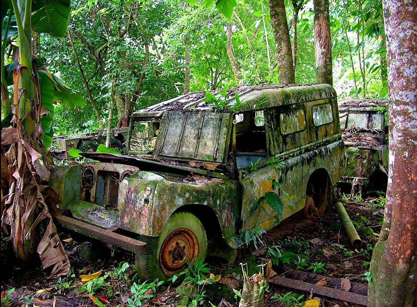 Конечно же, жители Колумбии, Мексики, Панамы и США знали, что преодолеть два континента посуху возможности нет. Знали об этом и местные автопроизводители. Первый, кому удалось бы сделать это, получил бы громкую рекламу на много лет вперед, поэтому в начале 1960-ых такую попытку предприняла компания Chevrolet, поддержав исследовательскую миссию журнала National Geographic. Не один из трех внедорожников, созданных на базе заднеприводной модели Corvair, а также нескольких армейских джипов Willys не добрался до финальной ее точки, мыса Горн, – все они были брошены участниками экспедиции в непроходимых джунглях на разных участках опасного маршрута. Их остовы до сих пор врастают в рыхлую почву, в чем можно убедиться на этих редких снимках.