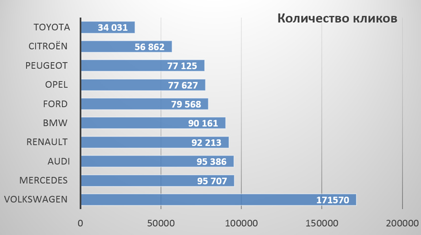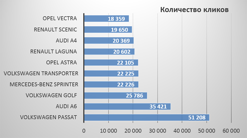 Интересно, что наша статистика во многом совпадает с официальной статистикой самых популярных среди всех зарегистрированных (а это около 4 млн) в Беларуси автомобилей: «народной» маркой легкового автомобиля все последние годы остается Volkswagen. Кстати, в десятке самых популярных из зарегистрированных в Беларуси авто, по данным на конец 2019 года, также Lada (новые и более доступные для белорусов авто российского производства стали популярными после введения заградительных пошлин), Opel, Renault, Audi, Ford, «Москвич», Peugeot, ЗАЗ, Mercedes.