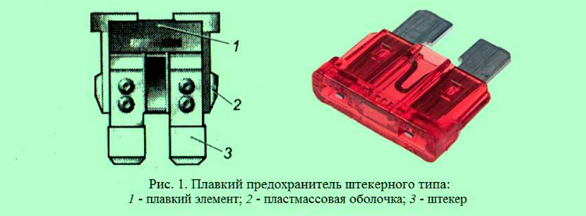 Однако сегодня наибольшее распространение получили плоские предохранители, имеющие две плоские ножки, тонкую рабочую часть, выполненную из тугоплавкого провода, и пластиковый корпус.