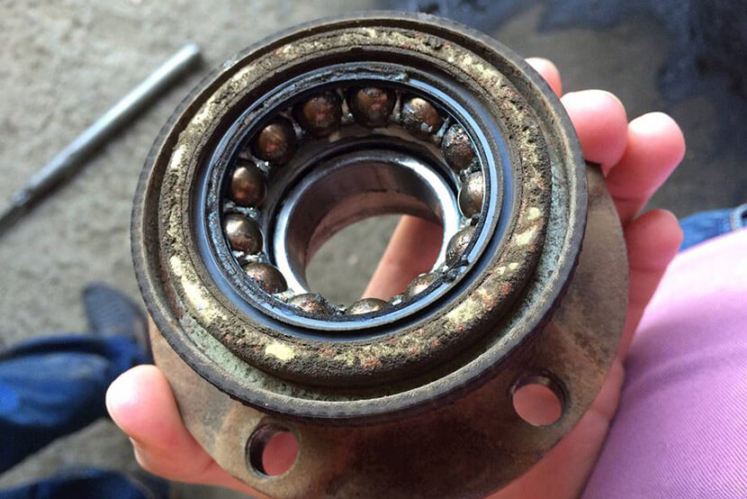 Так, изношенная внутренняя поверхность ступичного подшипника, который напрямую влияет на отклонение оси вращения ступицы и всего колеса, вызовет вибрацию и сильный гул как при нажатии на педаль тормоза, так и при равномерном движении, поскольку система «ступица-диск-колесо» выходит из равновесия.