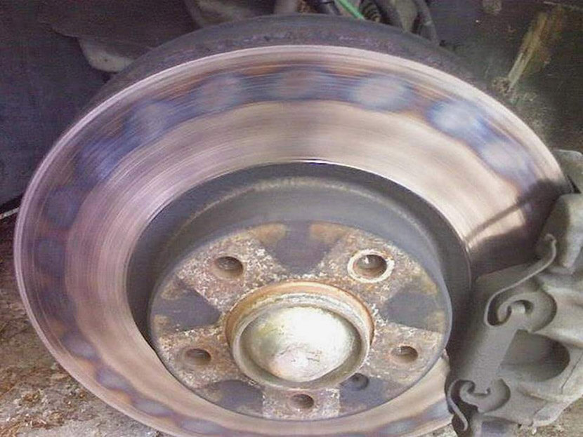 Если мы говорим об агрессивном вождении, то помимо множества других проблем это может вызвать и деформацию тормозных дисков. Подобная неприятность случается во время перегрева диска с последующим его резким охлаждением. Определить возникновение данного дефекта можно по синему отливу диска и «волнам» на его поверхности.