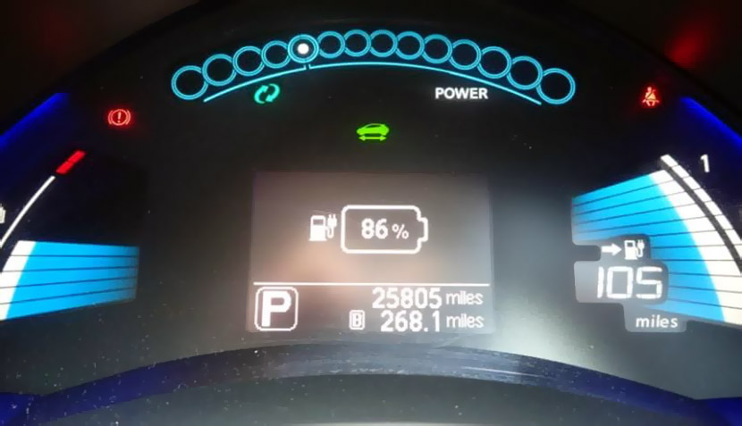 У Leaf электромотор на 80 кВт, привод передний, максимальная скорость – 145 км/ч. По факту ни разу не разгонялся до таких значений – смысла в этом не было никакого. Все же запас хода даже по паспорту – 160-200 км, а при больших скоростях запас хода может резко снизиться. Так что не рисковал.