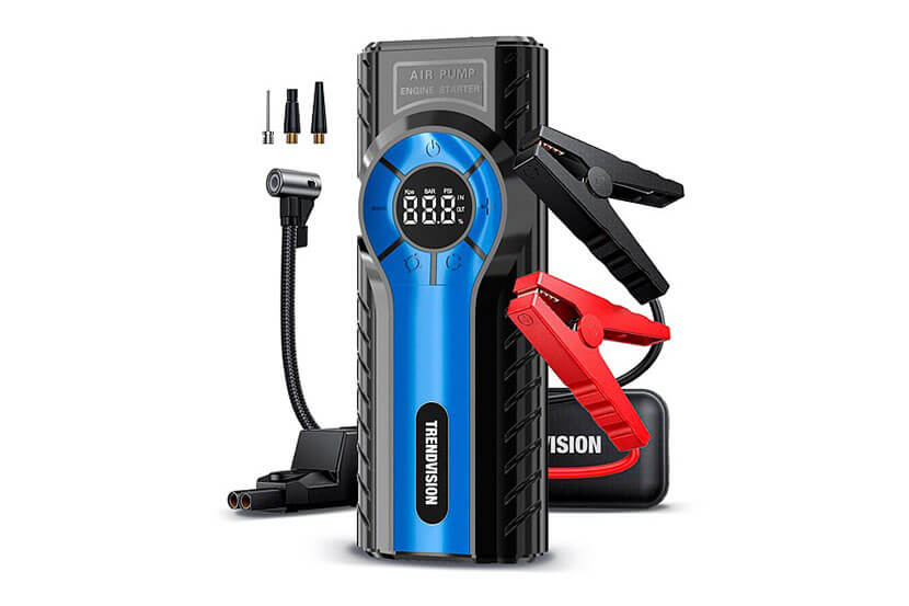 Комплект технических помощников был бы неполным без шинного компрессора. Но если таковой у автомобилиста уже есть (а как иначе?), ему можно предложить более прокачанную альтернативу – мультиинструмент, являющийся гибридом компрессора и пуско-зарядного устройства. Этот девайс имеет встроенный аккумулятор на 12.000 мАч, выдающий для запуска мотора 600 ампер номинальных и 1200 пиковых, компрессор с цифровым манометром и системой автоотключения, способный на полном заряде накачать все четыре колеса, а также пауэрбанк и мощный LED-фонарь, у которого есть режим подачи сигнала SOS. В общем, такой гаджет выручит в любой ситуации.