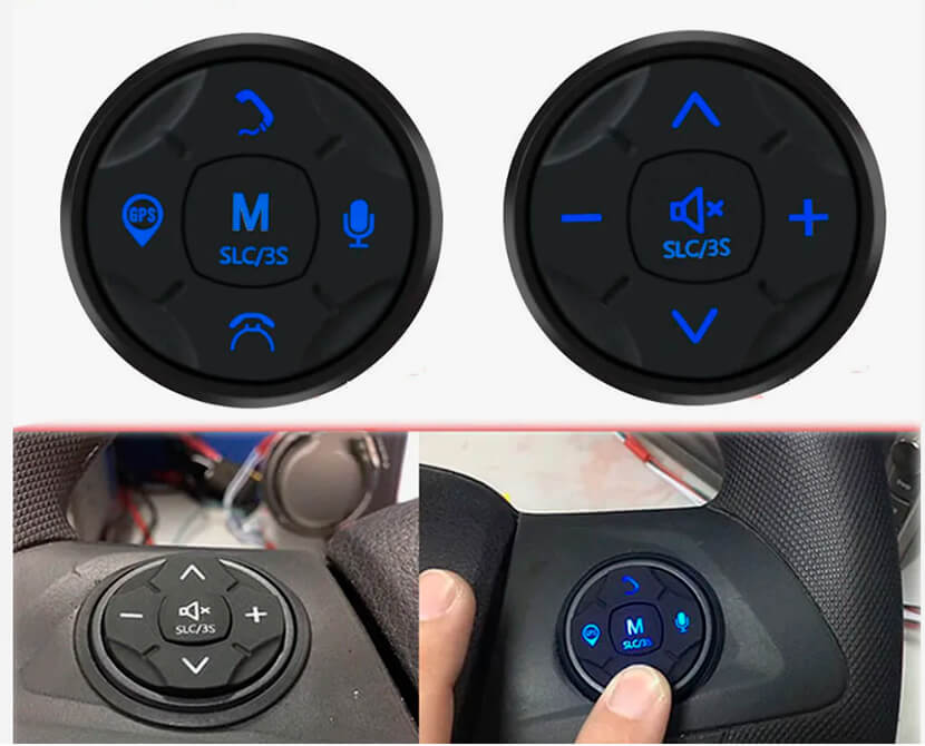 Еще одним девайсом, облегчающим процесс вождения, станет пульт управления магнитолой с прошивкой Android (а таковых на нашем рынке подавляющее большинство). Если в автомобиле, предположим, нет мультифункционального руля, но медиасистема присутствует, ее можно апгрейдить, докупив два круглых блока с клавишами для управления звонками и музыкой. Как правило, они круглой формы, имеют резиновые самоклеящиеся держатели и отлично впишутся в интерьер любого авто.