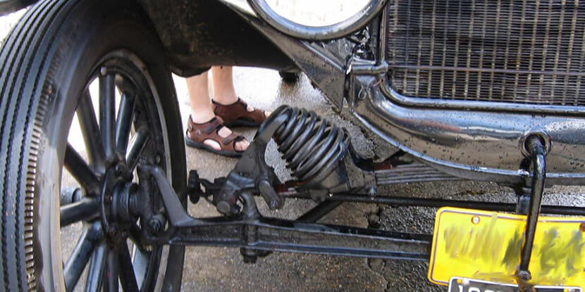 Следует помнить, что какой-никакой подвеской оснащались даже различные виды конных повозок. В них кузов в буквальном смысле подвешивали над рамой на цепях или сплетенных кожаных ремнях — отсюда и название, «подвес». Конечно, большой скорости конные экипажи не развивали, поэтому такого простейшего демпфирующего устройства было достаточно. Но когда появились более тяжелые и во всех смыслах опасные автомобили, в качестве гасящих вибрации и колебания элементов стали использоваться куда менее изящные устройства.