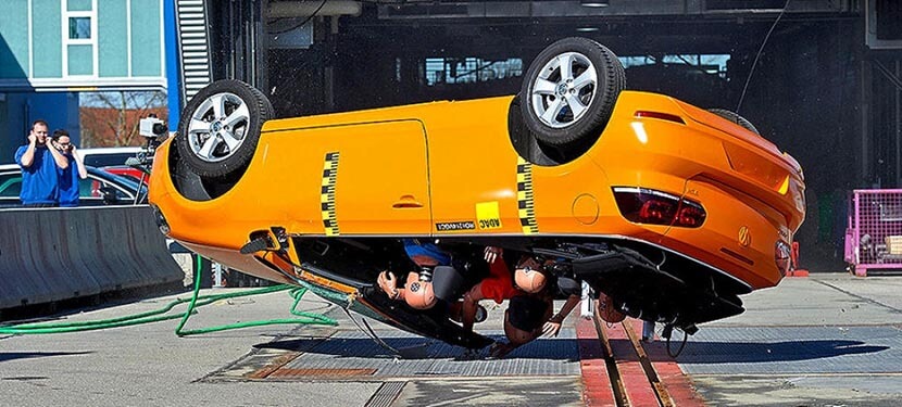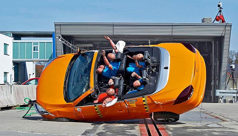 Чтобы подобного не происходило в буквальном смысле, американский Страховой институт дорожной безопасности (IIHS) проводит краш-тесты особого типа, на которых проверяется прочность крыши различных автомобилей. Всё дело в том, что в США по официальной статистике каждый год десятки тысяч людей гибнут в авариях, при которых авто опрокидываются.