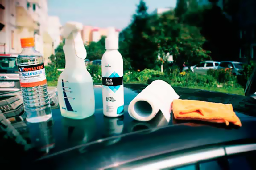 При нанесении «антидождя» крайне важна предварительная подготовка поверхности, так как наносить препарат надо на идеально чистое стекло. Сперва нужно отмыть его водой с автошампунем, а затем моющим препаратом, содержащим нашатырный спирт. После этого обрабатываемые поверхности следует протереть бумагой или салфеткой до появления скрипа, не забывая почистить все видимые углы.
