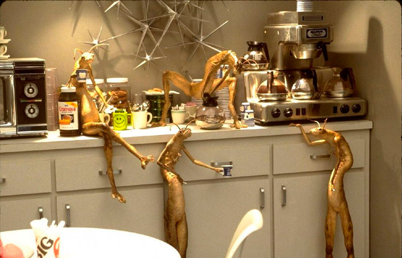 Прежде чем приступить непосредственно к съемкам, режиссеру предстояло провести утомительную процедуру предпродакшна, растянувшуюся почти на год. Во время нее специалисту по гриму Рику Бейкеру нужно было разработать 127 образов инопланетян. Это было поистине сложно, поскольку каждого из представителей внеземных цивилизаций по очереди браковали то Спилберг, то Зонненфилд: одному нравилась голова монстра, но не устраивало туловище, другому – наоборот. В итоге Бейкер без конца перекраивал предложенных им существ.