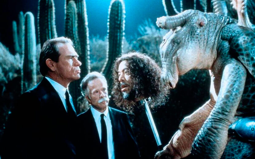 А ведь были еще впечатляющие декорации Корона-парка, в котором проходила Всемирная выставка 1939 года, создание двухмерного гуманоида Чаки, сверхсложный образ злодея Жука, подземная штаб-квартира MiB с интерьерами Международного аэропорта имени Джона Кеннеди. Всё это удалось убедительно снять благодаря команде суперпрофессионалов: уже упомянутому Рику Бейкеру, оскароносному дизайнеру Бо Уэлшу, художнику Паббло Фьеро и специалистам компании Джорджа Лукаса Industrial Light & Magic, занимавшимся визуальными эффектами.