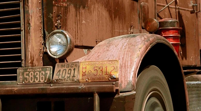 Кроме того, бамперы Peterbilt 281 усеяны трофейными номерными знаками сбитых в дороге автомобилей. Всего их должно было быть 17, но режиссер оставил всего 6, чтобы те не так сильно бросались в глаза. Недостающее количество жертв появилось на бампере в виде глубоких насечек.