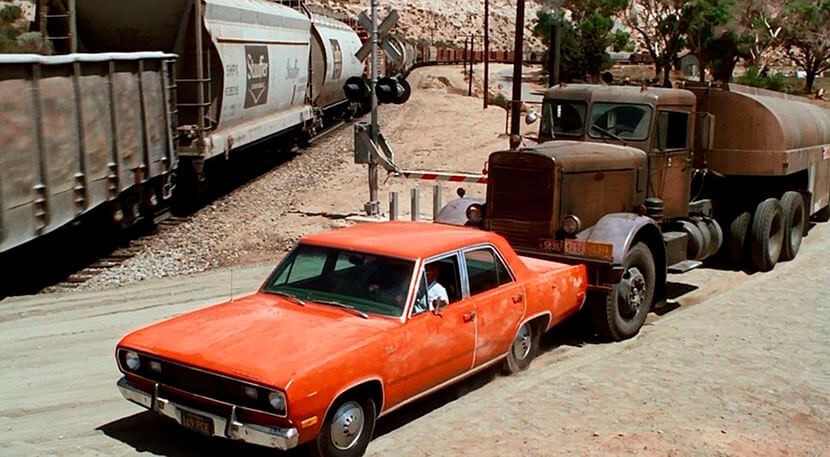 А вот жертвой грузовика стал типичный для своего времени бюджетник Plymouth Valiant. Его режиссер увидел случайно, припаркованным возле закусочной. В глаза Спилбергу сразу бросилась субтильность модели. Несмотря на это, авто успешно конкурировало в своем классе с Ford Falcon и Chevrolet Corvair.