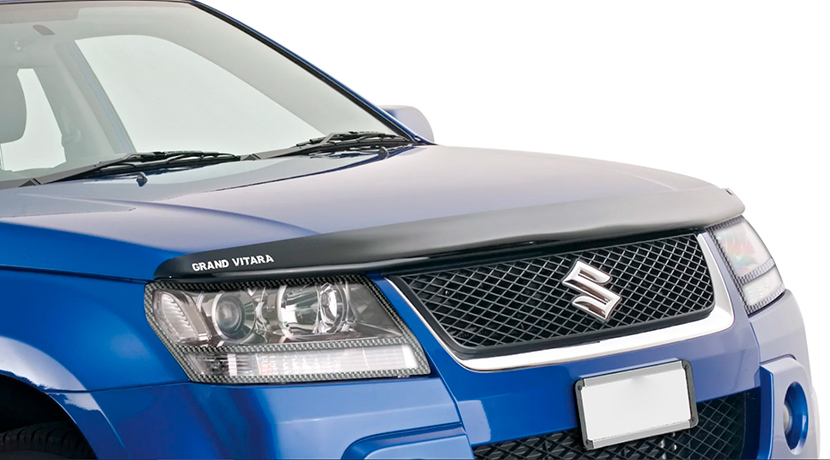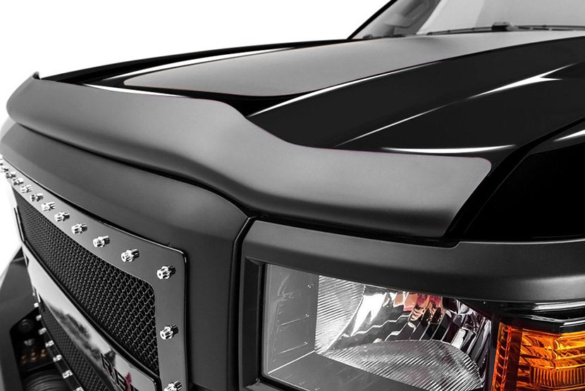 Еще одним распространенным элементом в семействе дефлекторов является та самая «мухобойка» – накладка из акрила, что устанавливается на переднюю часть капота. Она защищает от пескоструя «нос» – наиболее уязвимую часть машины, предотвращая появление царапин, сколов и других механических повреждений. Также считается, что благодаря этому элементу щетки стеклоочистителей и «лобовик» меньше пачкаются.