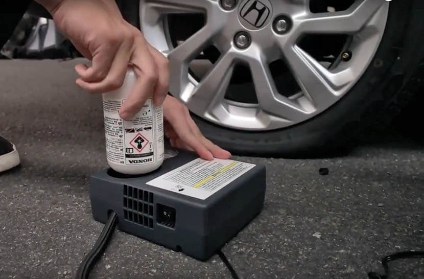 • баллон с герметиком, который может бесповоротно испортить систему датчиков давления в шинах;