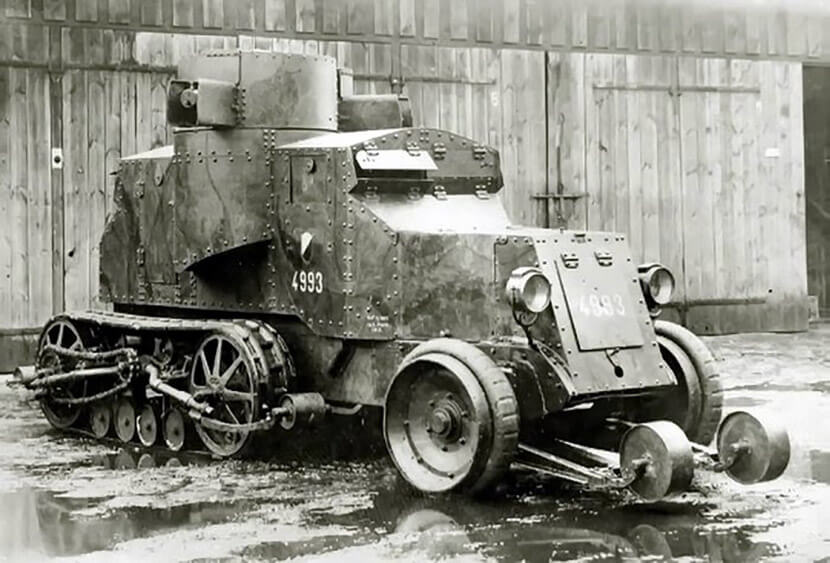 Любопытно, что схожие авторские проекты в начале ХХ века появлялись и в других странах вроде Германии, Франции и, конечно, Великобритании, но при этом не находили у себя на родине понимания. Испытания броневиков и их точечное применение, наряду с достоинствами вроде мобильности, высокой скорости и относительной надежности двигателя, по сравнению с танками, вскрывали их главные недостатки: плохую проходимость на пересеченной местности и недостаточное вооружение. Впрочем, и эти вопросы при желании можно было решить.