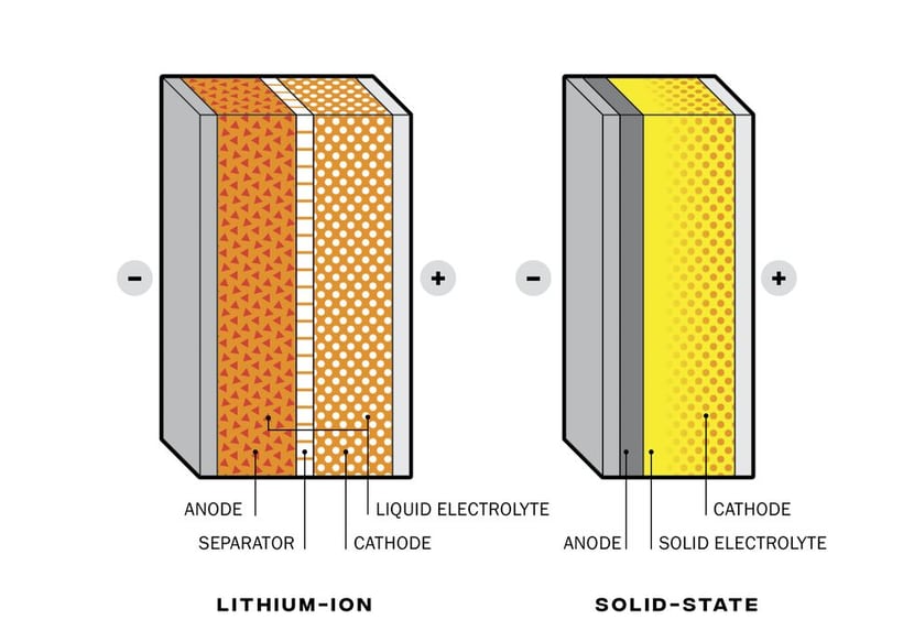 Твердотельные аккумуляторы заменяют жидкий электролит, используемый в традиционных литий-ионных аккумуляторах, твердым электролитом, что также устраняет необходимость в сепараторе. Технология обещает большую плотность энергии и, следовательно, больший радиус действия для электромобилей. Теперь автопроизводителям просто нужно выяснить, как производить эти аккумуляторы в больших масштабах.