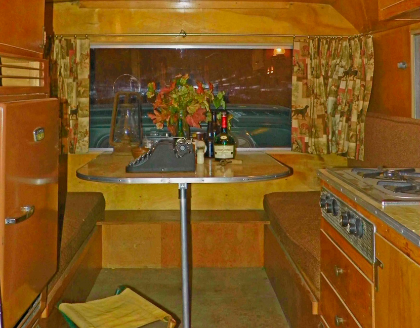 Для справки: находясь в кузове «Росинанта», писатель часто признавался, что ощущает себя на борту маленькой яхты или в панцире ученой улитки… Судя по фото выше, там действительно было уютно.