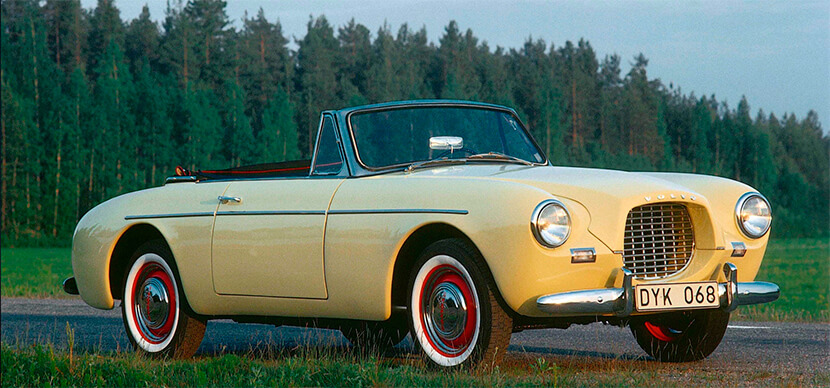 Первый спорткар от шведского автопроизводителя увидел свет в 1956-ом, спустя три года после презентации американской «зажигалки». Судя по странной внешности, данная модель была сделана впопыхах и исключительно ради того, чтобы не остаться в стороне от нового тренда.