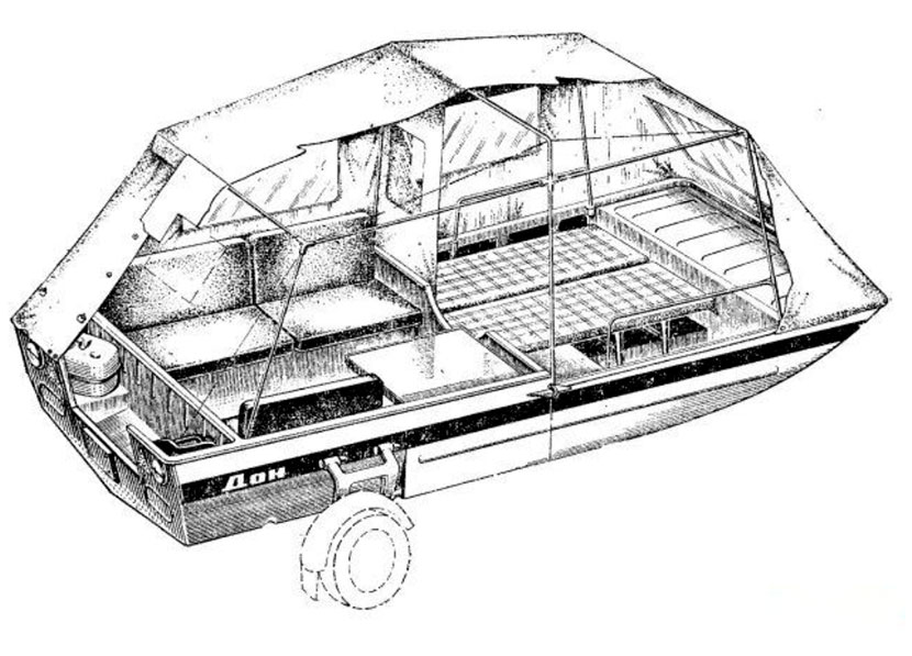 В положении «дача» это был двухкомнатный кемпер на четырех человек. Что касается транспортировки «Дона», то он подходил практически всем советским легковым машинам, кроме «запорожца». Вес лодки-прицепа достигал 267 кг, а стоимость – порядка 2000 полновесных советских рублей. В первый год производства было выпущено 500 экземпляров такого кемпера.
