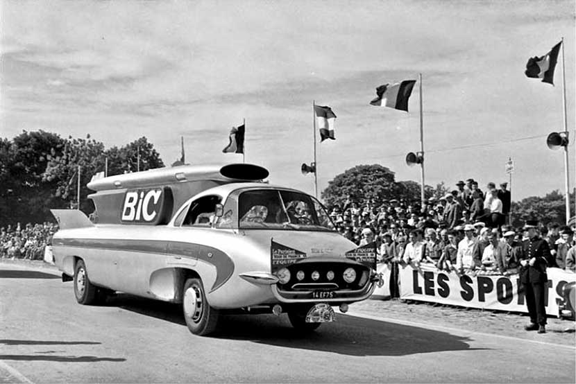 В 1952 году компания BIC впервые самостоятельно изготовила шариковую ручку, что стало отправной точкой на ее пути изготовления письменных приборов. Со временем продукцию этого бренда даже стало модно коллекционировать. Однако перед тем как прогреметь на весь мир, BIC решила заказать компании Peugeot собственный продукт-мобиль в качестве машины сопровождения на «Тур де Франс» – престижнейшей велосипедной гонке в мире.