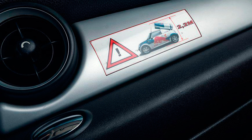 Кстати, высота рекламного MINI вместе с упомянутой банкой составляет 2,2 метра. Особая геометрия кузова увеличивает парусность машины: на этот случай в салоне авто есть памятка, запрещающая разгоняться более 130 км/ч, иначе прикрепляемую конструкцию может вырвать встречными потоками воздуха.