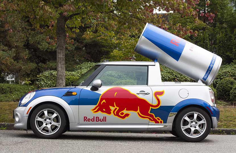 Сегодня Red Bull Car является самой узнаваемой рекламной машиной. Автопарк компании по производству «энергетика» насчитывает около 900 единиц Cooper с банкой на крыше. Эти банки, как и сами авто, создают на фирменном производстве MINI, для чего была специально оборудована отдельная конвейерная линия. По этой причине рекламная машина выглядит так, как и должна выглядеть выпускаемая серийно модель, то есть качественно собрана и покрашена.