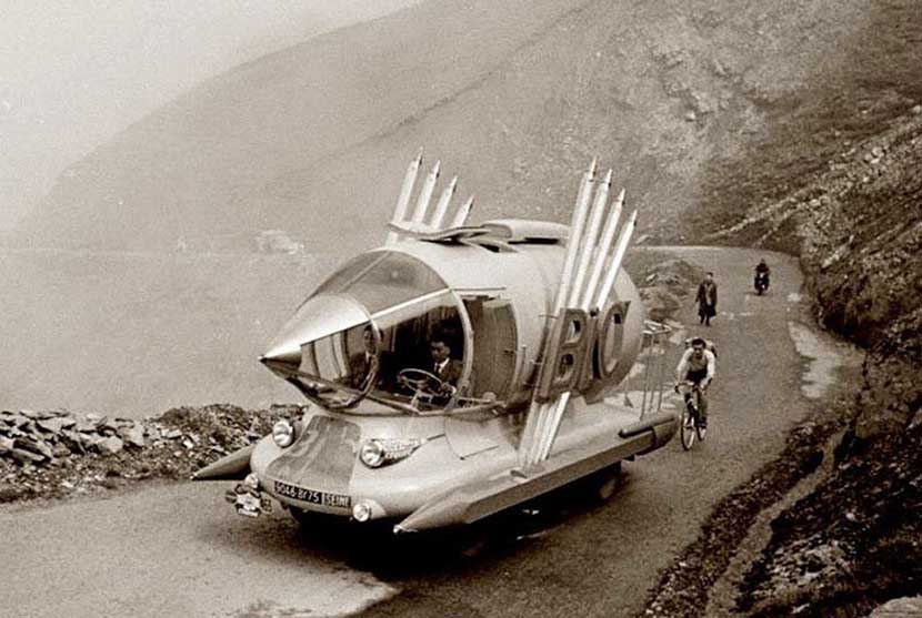 Скорее всего, свою кличку автомобиль получил из-за долгих месяцев работы над ним. Автомобиль, к слову, был построен на шасси грузовика 55U, тогда как дизайн кузова был выполнен в популярной тогда лётной тематике. Впрочем, сходство его кабины с авиационным фонарем оказалось очень условным. Тем не менее этот «блок-пузырь», откидывался вперед, боковые элероны придавали кузову стремительность, а головная оптика дословно «цитировала» рассказы о пришельцах. С таким автомобилем сопровождения «Тур де Франс» оказался как никогда зрелищным – публика восторгалась Bic Car едва ли не больше, чем самими участниками гонки…