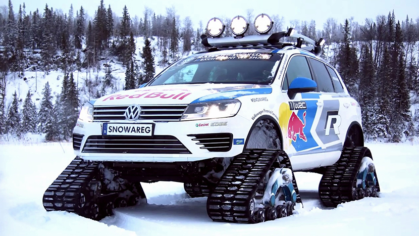 Сразу оговоримся, что в данной подборке речь пойдет не о серийных гусеничных вездеходах, а о гражданских автомобилях, ходовые качества которых были соответствующим образом улучшены. Открывает наш список спецверсия внедорожника Touareg, которую шведское подразделение компании Volkswagen поставило на гусеницы в 2012 году.