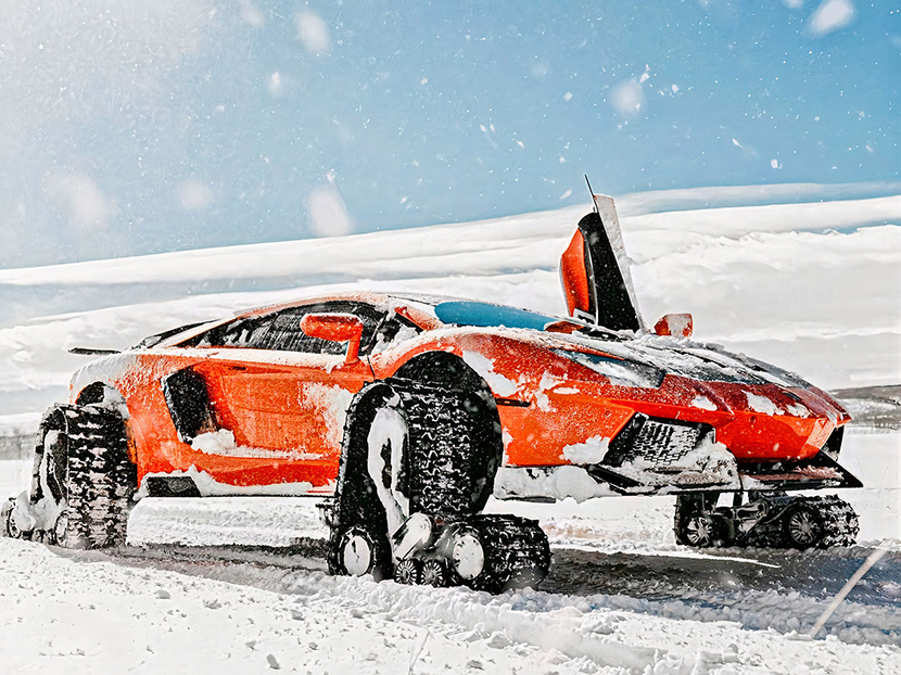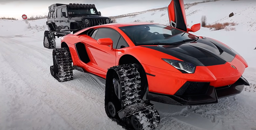 Не миновала гусеничная модификация и представителей класса суперкаров. Так, в начале 2021 года видеоблогер из США под ником TheStradman установил гусеничные траки на суперкар Lamborghini Aventador. Как ни странно, получилось здорово: итальянский автомобиль с силовым агрегатом на 700 «лошадей» смотрелся в заснеженных горах Юты удивительно органично.
