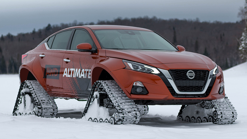 Любопытную пиар-кампанию инициировали специалисты бренда Nissan, поставив в 2019 году утилитарный седан Altima на гусеничные траки! Данная акция была приурочена к презентации обновленной модели и определенно привлекла внимание общественности к этому событию.