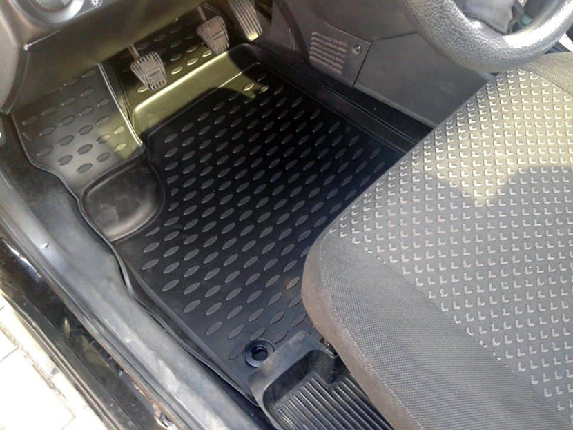 Поэтому применяются резиновые коврики, так называемые ванночки, устойчивые к разным погодным условиям. Они не покрываются ледяной коркой, собирают растаявший снег и влагу и не дают им растечься по полу автомобиля. Также из плюсов резиновых ковриков – они легко моются и относительно дешево стоят.
