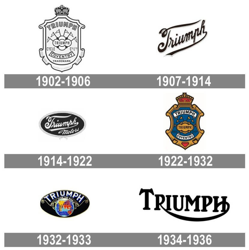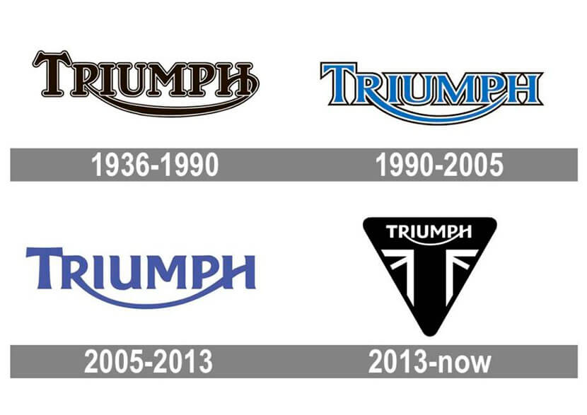 Если не считать эволюции шрифта, самым узнаваем логотипом Triumph традиционно являлся лавровый венок победителя, в который было вписано название бренда, – отсылка к победам в гонках. Существенным образом эмблема изменилась лишь в 2013-м: круглый шильдик уступил место треугольному с символическим изображением британского флага по краям.