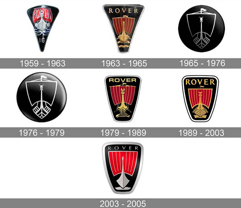 По этой причине долгое время в качестве фирменной эмблемы Rover использовал скандинавский драккар. Этот яркий элемент айдентики с мощным посылом претерпевал различные метаморфозы, от богато украшенного деталями и цветами до визуально упрощенного, но сохранился вплоть до упразднения марки.