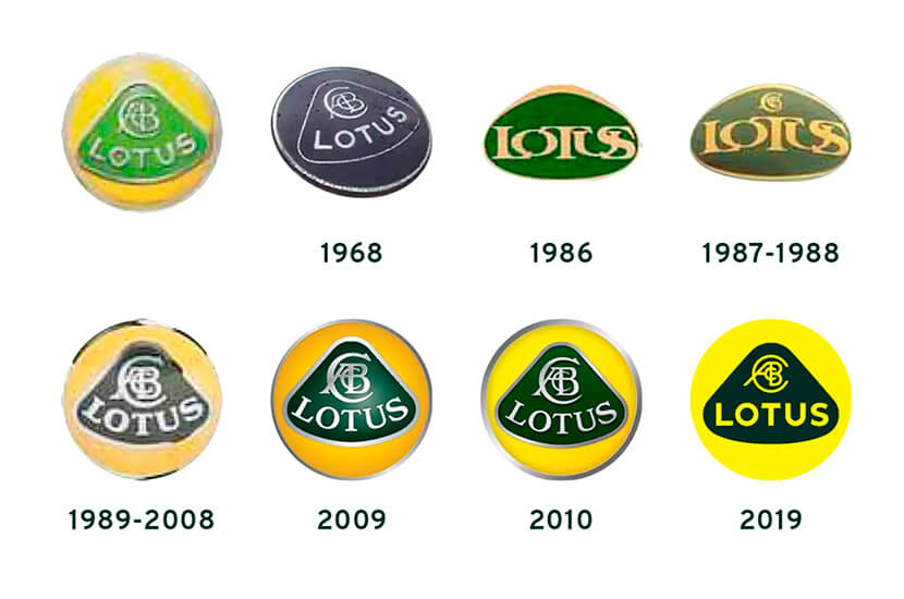 В вензеле логотипа, размещенном поверх оригинального названия фирмы, содержатся инициалы полного имени её основателя Энтони Брюса Колина Чепмена. Как видно на фото, они исчезли с эмблемы в год его смерти в 1982-м, но вернулись в 1987-м, когда контрольный пакет акций Lotus Cars был выкуплен концерном General Motors. Сегодня бренд является частью китайского холдинга Zhejiang Geely Holding Group, который также владеет шведской маркой Volvo.