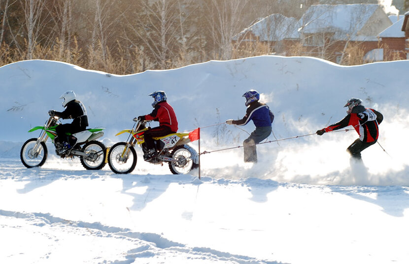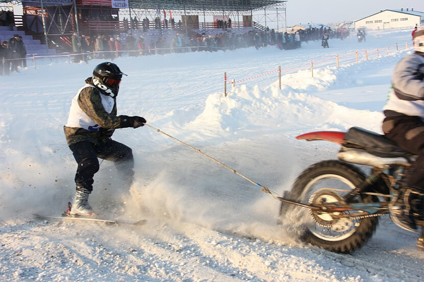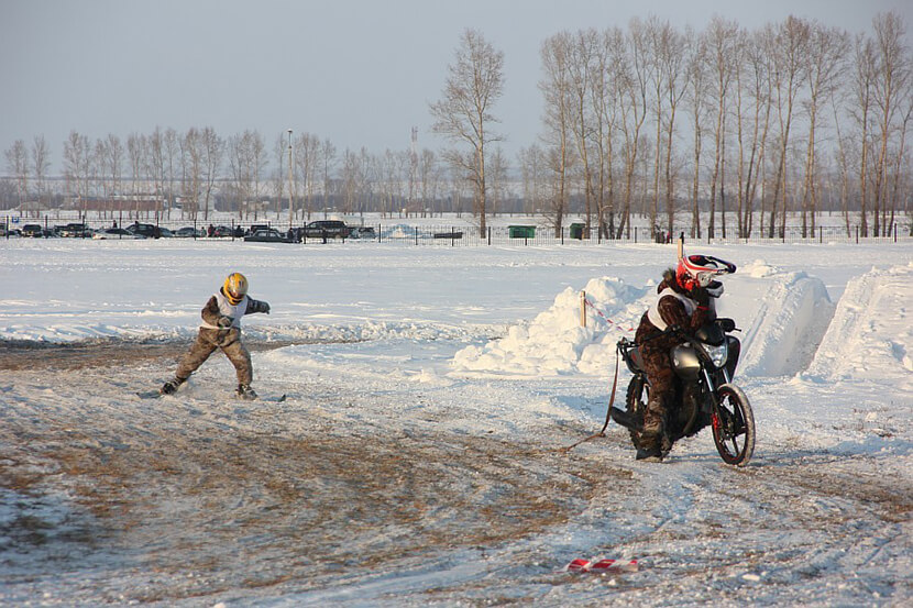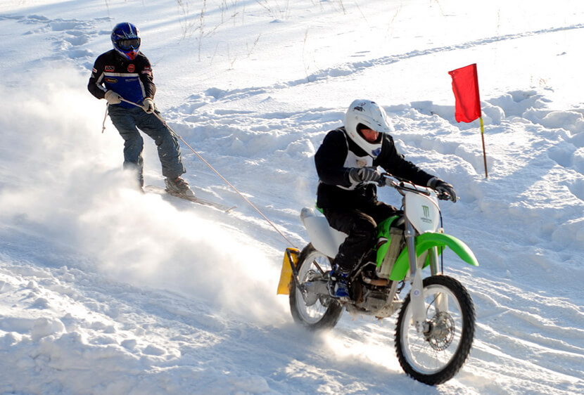 История мотоспорта была бы не полной без абсолютно безумного, на первый взгляд, привлечения лыжников. Если не интересоваться данной тематикой, то может показаться, что лыжник, привязанный к транспортному средству, — подростковая блажь жителей каких-либо северных регионов. На самом деле, скийоринг или скиджоринг (от англ. Skijoring) некогда всерьез рассматривался в качестве кандидата для включения в олимпийские виды спорта — в 1920-ых таковой даже практиковался в виде езды на лыжах за лошадью. Существует он и в наши дни…