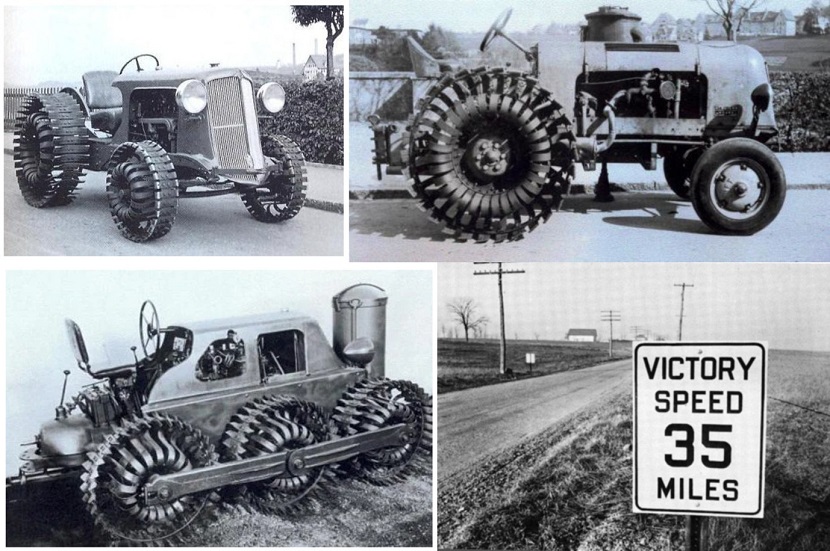 Все мы привыкли к тому, как выглядят колеса современных автомобилей. Стандартная схема «резиновая покрышка + металлический обод» еще в 1910 году доказала свою эффективность и с тех пор существенно не менялась. То есть менялся состав резиновой смеси, количество и качество нитей корда, а также площадь и способ их расположения, толщина и рисунок протектора и т.д., но кардинальных изменений в конструкции покрышек все же не происходило. Только это не значит, что других колес для транспортных средств не существовало…