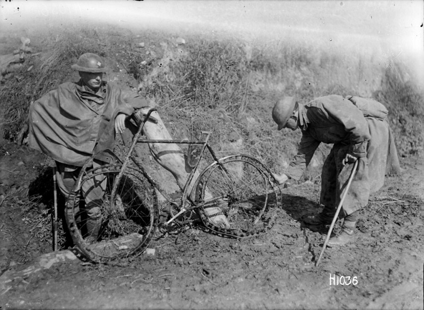 В разгар мирового конфликта резина пополнила список дефицитных товаров для его участников, особенно для Германии. Активные поиски ее замены извлекли на свет те самые подрессоренные металлические колеса, которые еще называли эрзац-шинами. В числе прочего патент 1905 года применялся на велосипеде Herrenrad Victoria Model 12, который был адаптирован под военные нужды.