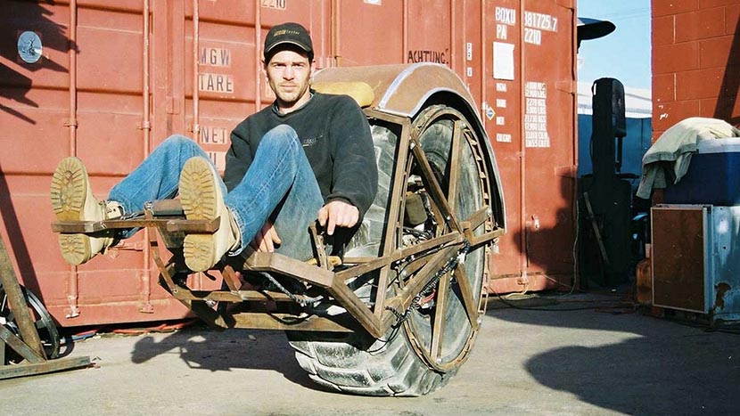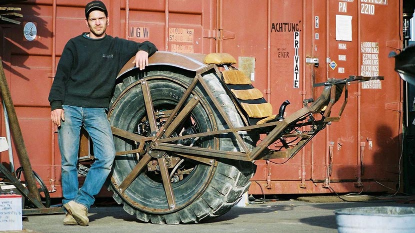 Еще один американский инженер-любитель Джек Лайалл создал революционный моноцикл в 2003 году для участия в фестивале постапокалиптической эстетики Burning Man, что ежегодно проходит в штате Невада. Для этого он использовал широкое колесо от трактора, куда поместил раму с закрепленным на ней 800-кубовым мотором Honda и 240-килограммовый противовес, позволявший моноциклу все время сохранять устойчивость.